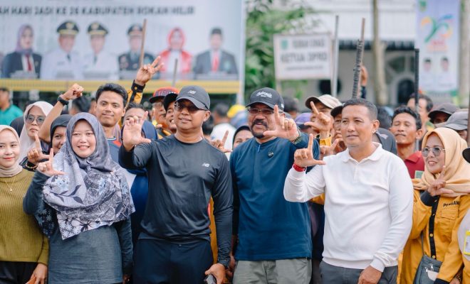 Rokan Hilir- Upaya menciptakan lingkungan yang bersih sehat dan nyaman serta mengantisipasi wabah malaria di Kabupaten Rokan Hilir, Wakil Bupati Rokan Hilir (Rohil), Jhony Charles BBA, MBA, bersama Kepala Dinas lingkungan hidup Rohil Suwandi Ssos turun langsung untuk memimpin kegiatan gotong royong massal yang dilaksanakan di Kota Bagansiapiapi pada Kamis (9/10/2025).