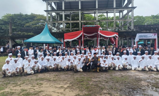 Rokan Hilir – Gerimis tipis menyelimuti langit Rantau Panjang Kiri, Kecamatan Kubu, Kabupaten Rokan Hilir, pada Rabu (22/10/2025) pagi. Meski lapangan Stadion Mini tempat upacara digelar tampak becek, semangat lebih dari 700 santri dari 19 pondok pesantren tak sedikit pun surut. Mereka datang dengan truk dan bus, sebagian menempuh perjalanan jauh, untuk merayakan Hari Santri Nasional ke X yang tahun ini mengusung tema penuh makna “Mengawal Indonesia Merdeka Menuju Peradaban Dunia.”